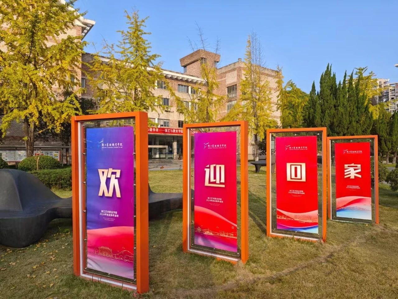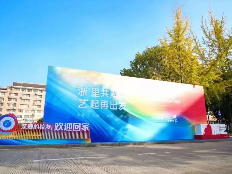 清早,初冬的暖阳洒在校园,返校的各种标牌在浙艺繁花的映衬下显得格外耀眼,校友们陆续回到梦想开始的地方。