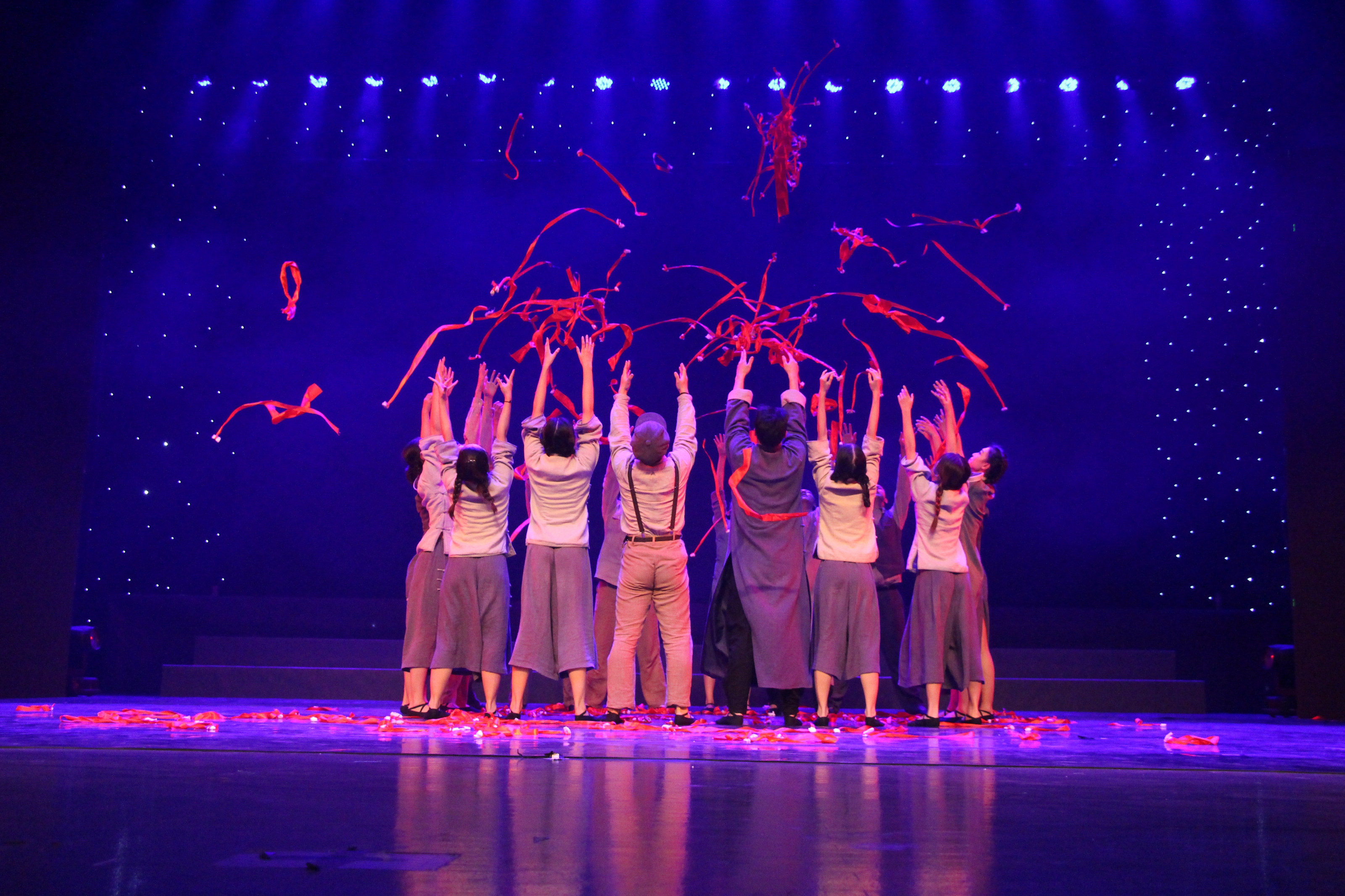 当被问到《红船》这场舞蹈传达了一种怎样的信念,李毅源老师阐述了自己的见解:一场《红船》以嘉兴南湖的红船为故事背景,以意象性的动作语言来表达对未来新社会所产生的憧憬;一根红绸化作希望、信仰、生命,它是星星之火,可以燎原,同时也象征了伟大的红色主义事业。杨博文补充到:《红船》的舞蹈意义更具体的体现为一种精神力量的凝聚与爆发,传达给观众一种精神理念,给人以深刻的启发和见解;在整场舞蹈中,每一根红绸代表着国旗的一针一线,而满场的红绸聚集在一起的时候,代表了革命先辈团结的精神品质。