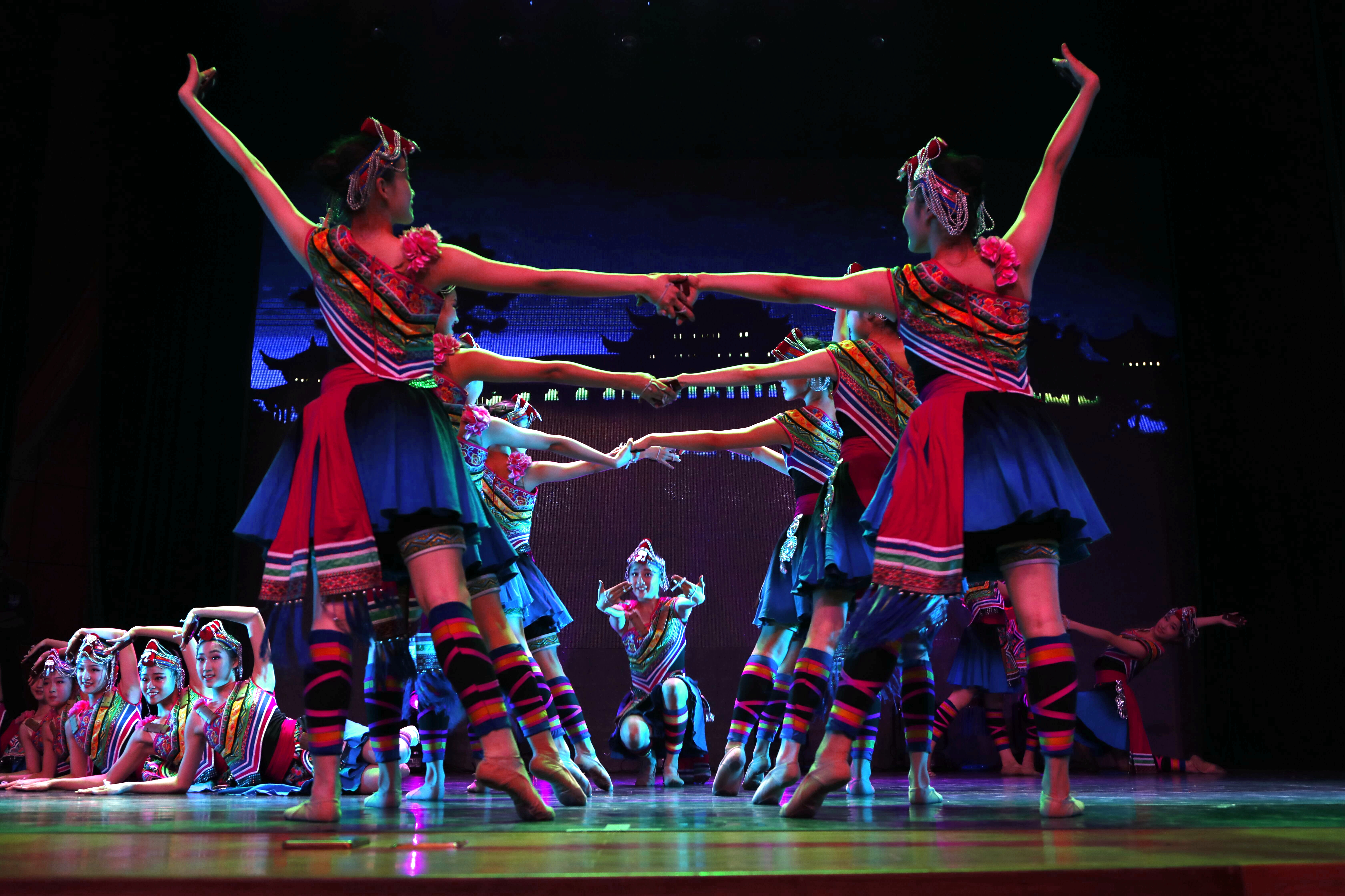 如果你没有学过艺术,你大概不会明白,艺术专业的老师们有多受不了小瑕疵。作为随团采访报道的学生记者和专场演出的特邀主持人,我坐在观众席,看着《顶碗舞》一遍遍地彩排,一遍遍地重来,在我即将被他们转得眩晕时,他们的指导老师终于喊了停。作为一个门外汉,我甚至看不出来彩排十几遍后的《顶碗舞》究竟比先前好在哪里,那些观众并不会计较的点,舞蹈演员为什么需要一遍遍地钻研,直到演出那晚,我突然就明白了,那是一种感觉,他们整齐的步子,精准的身段,都来自于那些超乎常人的钻研。