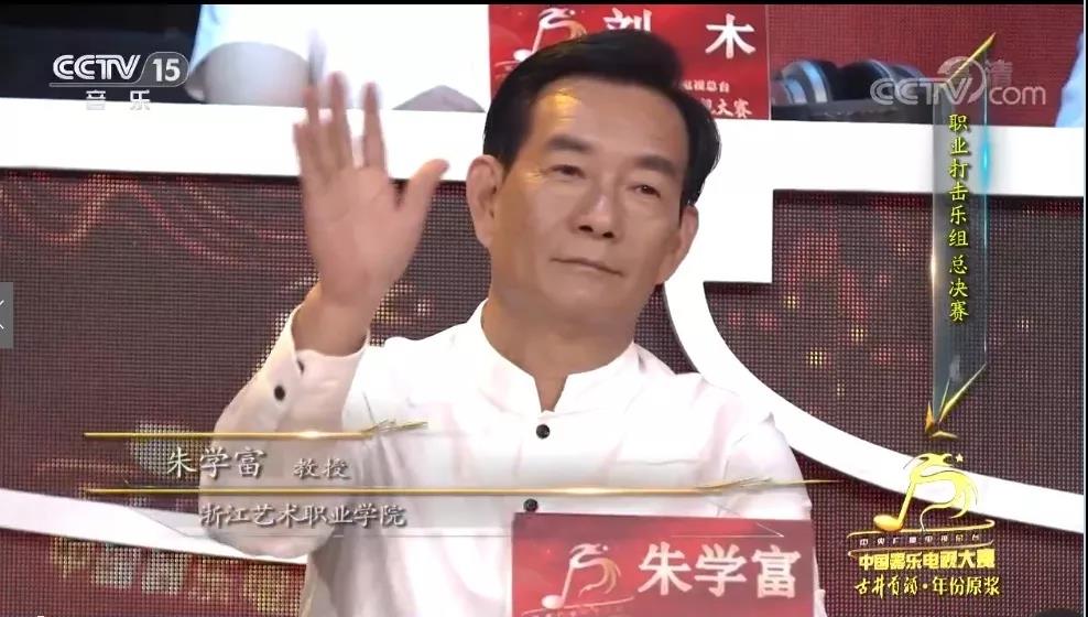 8月23日至26日连续4天播出的职业少年打击乐组、职业成年打击乐组决赛评委席上,出现了浙艺人十分熟悉的面孔,那就是浙江艺术职业学院音乐系教授朱学富。朱学富音乐表演戏曲音乐专业方向专业带头人浙江省戏剧司鼓专业委员会秘书长浙江戏曲音乐专业委员会理事,任音乐系越剧音乐专业司鼓打击乐专业课、合奏课、集锣鼓课、唱腔基础课、剧目排练等相关课程教学工作。8月中旬,应大赛组委会和栏目编导组之邀,朱学富前往北京,担任2019中央广播电视总台《中国器乐电视大赛》职业少年打击乐组、职业成年打击乐组决赛评委。时隔半月,朱学富再度赴京,在9月4日播出的职业打击乐组总决赛中担任评委,与来自全国51名专家评委们一起见证民族打击乐新星的诞生